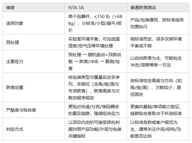 ISTA 3A与普通跌落测试的核心差异